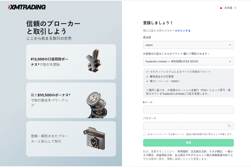 まずは、XMTadingの公式登録フォームにアクセスします。