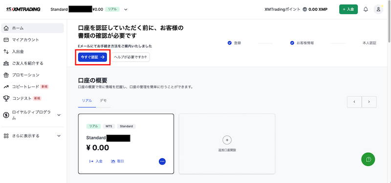 XMTadingのマイページにログインし、以下のステップで進めてください。