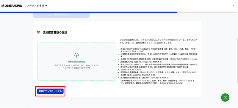 次は住所確認書類のアップロードです。