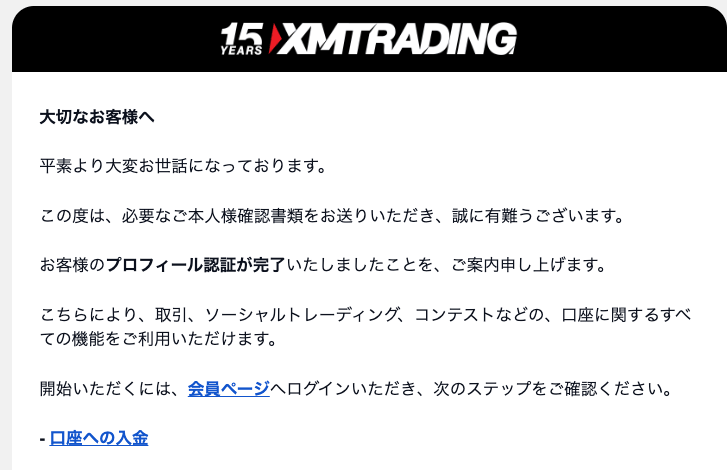 無事に有効化されると、登録したメールアドレス宛に「プロフィール認証完了のご案内」といった内容の通知が届きます。