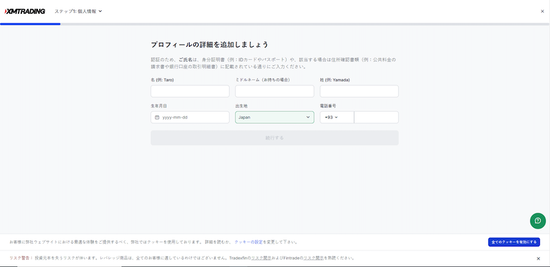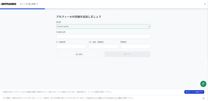 XMTadingのマイページへログイン後、追加のプロフィールの入力を求められます。